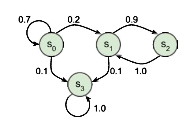 4개의 상태가 있는 마르코프 연쇄의 예시
