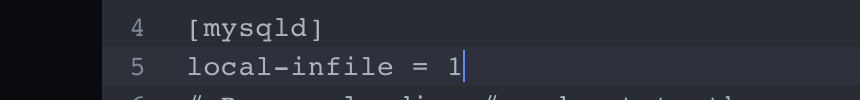 일단 나는 docker에서 mysql을 실행시킬 텐데 하면서 local-infile의 설정을 붙여줘야 한다.