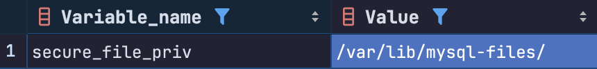 SHOW VARIABLES LIKE 'secure_file_priv';