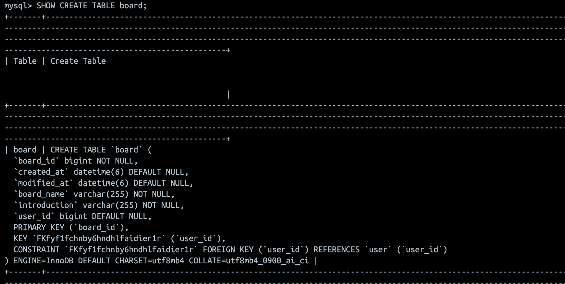 여기서 외래 키는 다 다르기 때문에 SHOW를 활용하여 외래키를 확인하고 지우자.