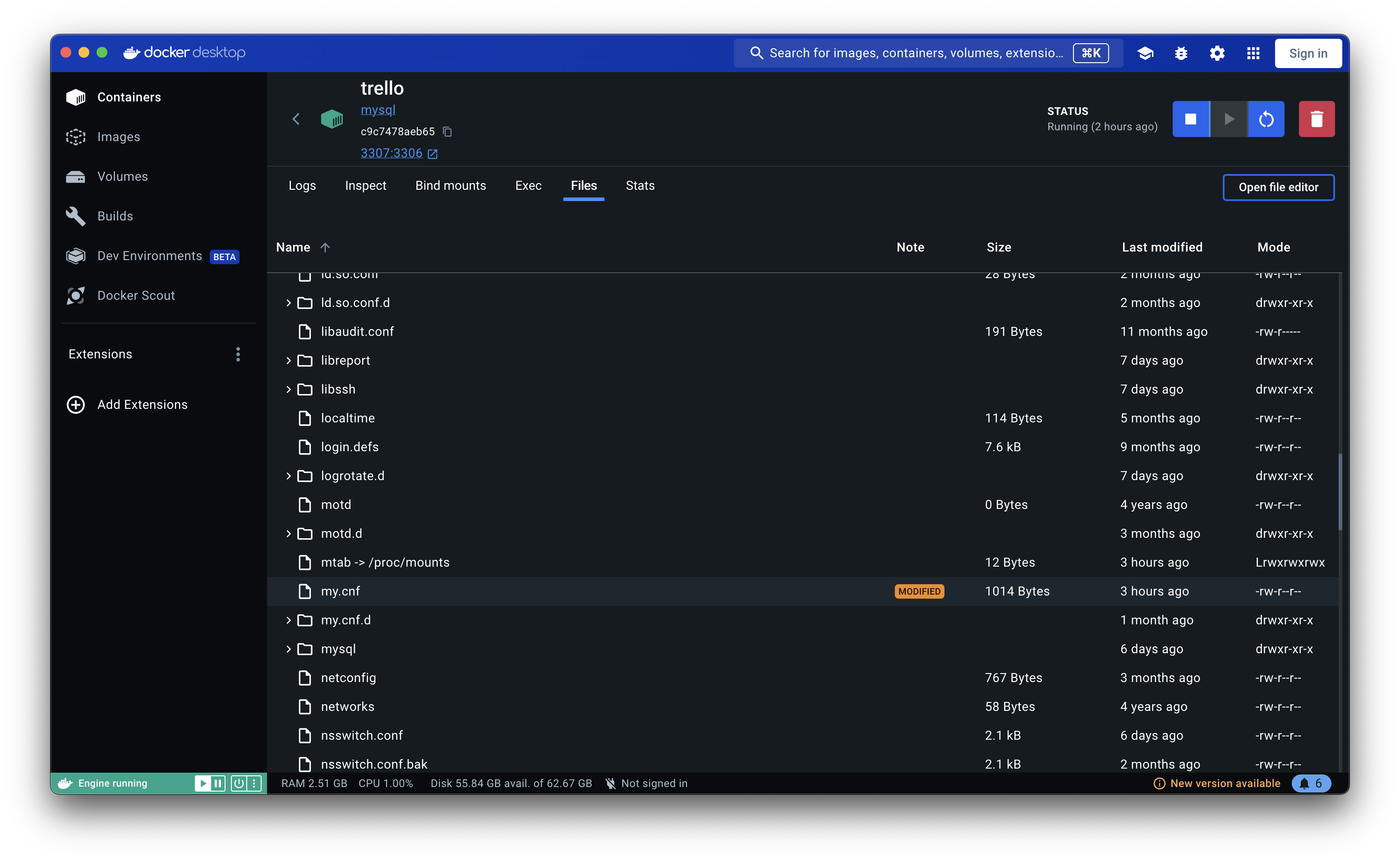 docker에서 컨테이너를 열어 DB - Files로 이동해보자