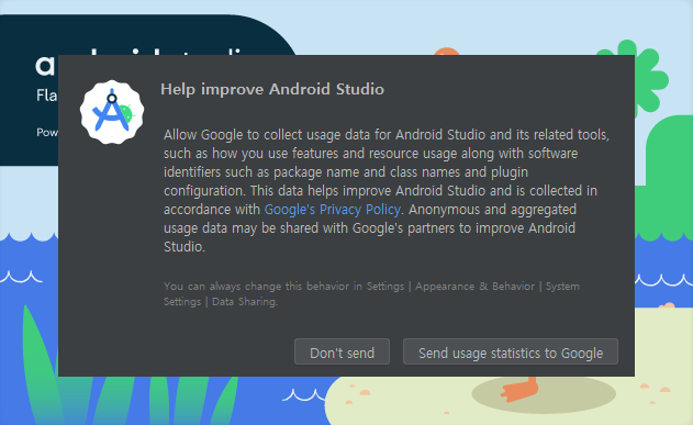구글에 뭐라뭐라 보낼꺼냐 라고 물어보는데 귀찮으니 보내지 말자.