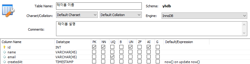 NN : Not Null, 데이터가 필수적으로 들어가야하는 옵션