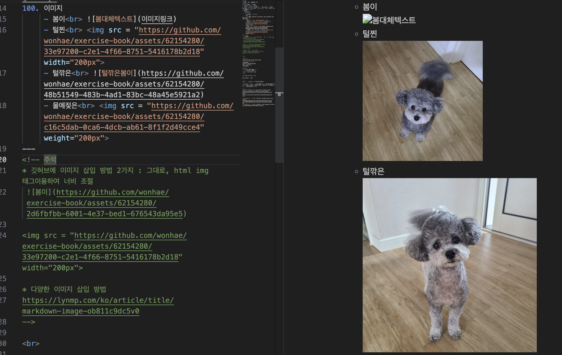 • 깃허브에 이미지 삽입 방법 2가지 : 그대로, html img 태그이용하여 너비 조절