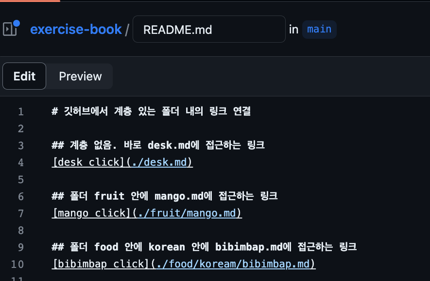 링크를 연결하기 위해 readme.md에 링크를 작성한다.