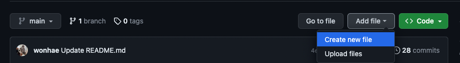 1) 폴더를 만들기 위해서 우측 상단 Add File > Create new file 버튼 클릭