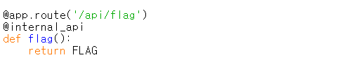 문제에도 나와있듯이, flag는 /api/flag에 저장되어 있다.