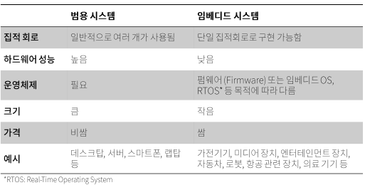 내장된 시스템 또는 내장형 시스템을 의미한다. 보통 특정한 목적을 위해 설계된 시스템으로, 하드웨어와 소프트웨어가 결합된 전자 시스템이다. 특정한 기능을 수행할 수 있도록 마이크로프로세서 또는 마이크로컨트롤러 등이 탑재된다.