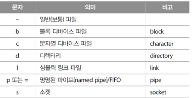 ls를 하게 되면 여러 파일의 종류를 확인할 수 있는데, 구분표는 아래와 같다.