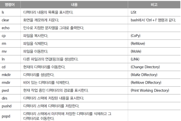 내장 명령어: 쉘에서 제공하는 명령어