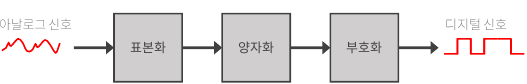 아날로그-디지털 변환 과정은 표본화, 양자화, 부호화이다.