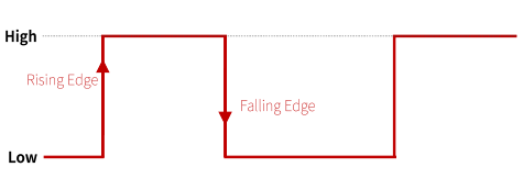 펄스파형은 LOW 상태와 HIGH 상태를 반복하는 전압레벨로 구성된다. 이상적인 주기 펄스는 2개의 에지(edge)로 구성되며, 상승 에지(rising edge)와 하강 에지(falling edge)가 있다.