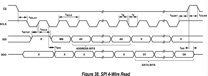 준비된 데이터를 ADXL345가 SDO 라인을 통해 마스터 장치로 보낸다. 이 때 전송되는 데이터는 X, Y, Z 축에 대한 정보(DATAX0~DATAZ1)로 구성된다.