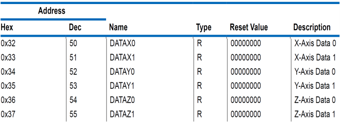 #define DATAX0 0x32 //X-Axis Data 0