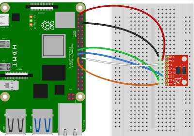 라즈베리 파이와 ADXL-345를 연결하기 위해서는 아래와 같이 회로를 구성하면 된다.