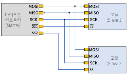 데이터의 송/수신 과정이 동기식이므로 클럭에 맞춰서 Master-Slave 간 통신이 진행된다.
