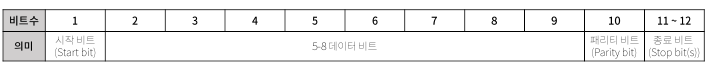 데이터 비트: 시작 비트 이후에 전송되는 5~8비트의 데이터 (일반적으로 1byte 사용)