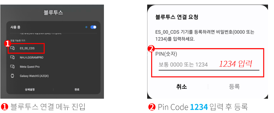 스마트폰의 경우 Android 운영체제를 탑재한 기기(갤럭시만) 가능하며 아이폰은 블루투스 3.0 이상부터 지원하여 연결이 어려우니 이 점을 유념하기 바란다.