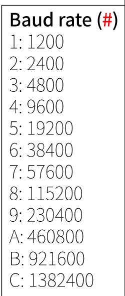 AT+BAUD#는 보율을 변경하는 숫자인데, 해당 표는 아래와 같다.
