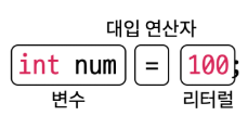 int number = 100; // 변수 선언 & 값 저장 동시에