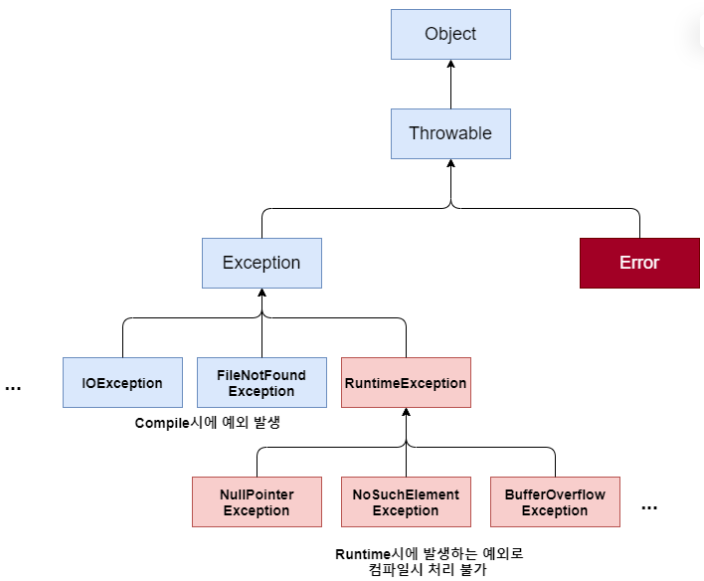 (이유는 Exception 클래스의 트리 구조 사진 참고)