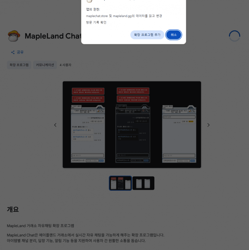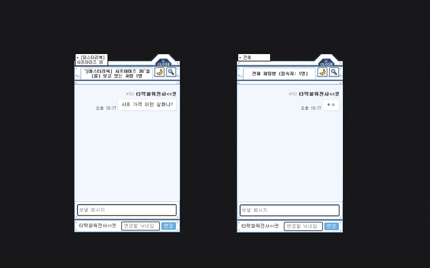 메랜지지를 이용하면서 항상 아쉬웠던 점은 실시간으로 소통할 수 있는 기능이 없다는 것이었습니다. 경매장 특성상 특정 아이템에 대한 여론이나 의견을 즉시 공유할 수 있다면 훨씬 유용할 것이라 생각했고, 이를 해결하기 위해 크롬 확장 프로그램 형태의 채팅 기능을 직접 구현해 보았습니다.