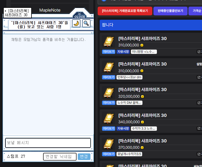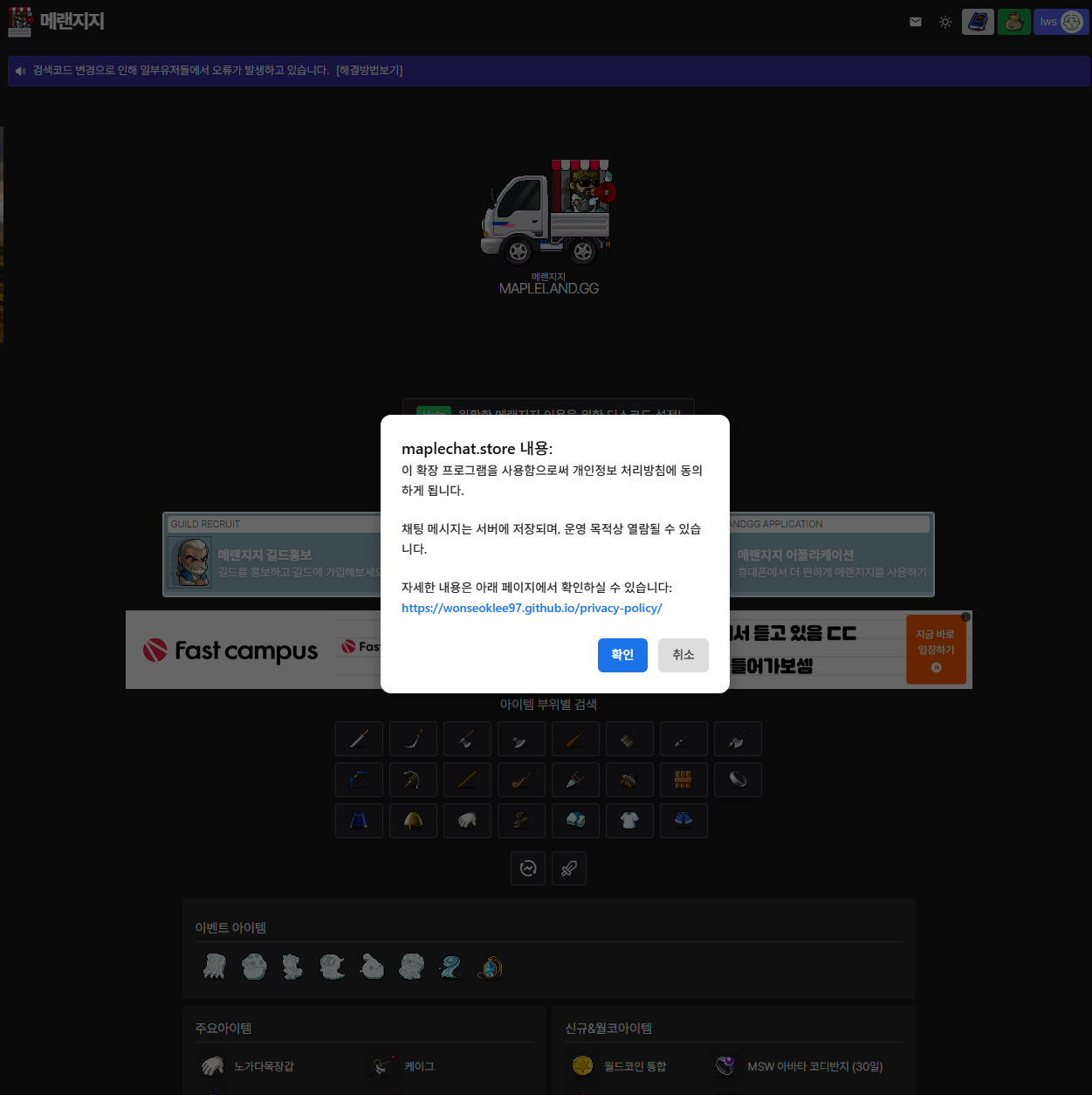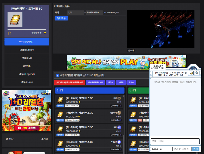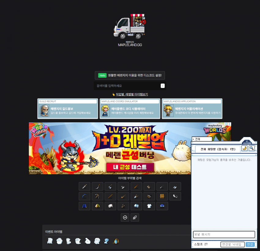 메이플랜드를 즐기면서 불편했던 점 중 하나는 게임 내에 경매장 기능이 없어 외부 사이트인 메랜지지(https://mapleland.gg)를 이용해야 한다는 점이었습니다.