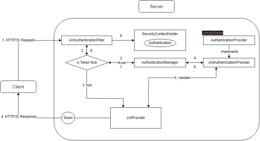 서버의 부담을 줄이고 추후 확장성 측면을 고려하여 세션 기반이 아닌 Spring Security와 JWT 토큰 인증 방식을 사용했습니다.