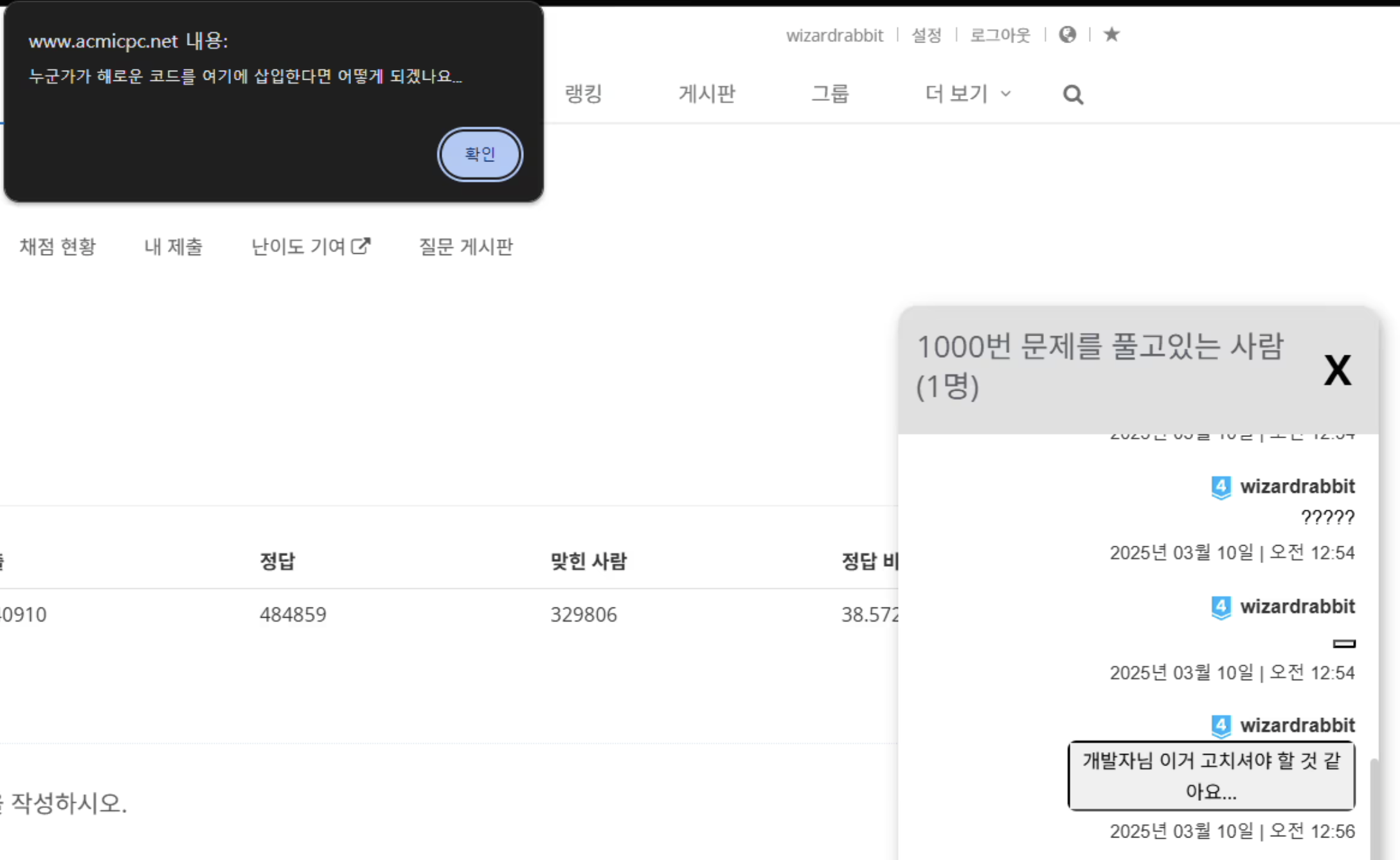 별도의 설치 과정 없이 크롬 브라우저에 확장 프로그램만 추가하면, 백준 사이트 접속 및 로그인 시 자동으로 채팅창이 표시됩니다.