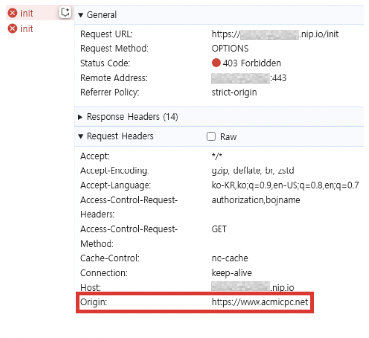 크롬 익스텐션의 콘텐츠 스크립트(content script)는 기존 (BOJ)페이지의 컨텍스트를 상속받기 때문에 Origin또한 상속받는 문제가 발생.