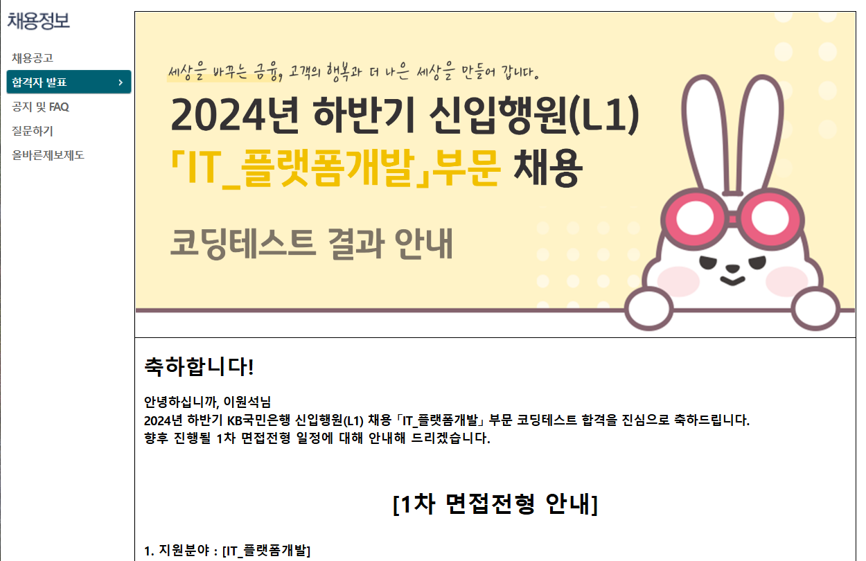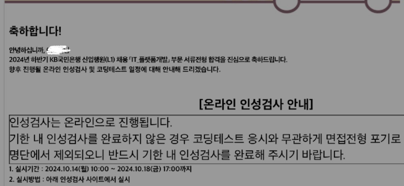 다행히 이번 KB국민은행의 하반기 채용에 SSAFY 우대 전형이 있었기 때문에 서류 전형은 무사히 넘길 수 있었습니다. (최합하면 진짜 싸피덕분이다)