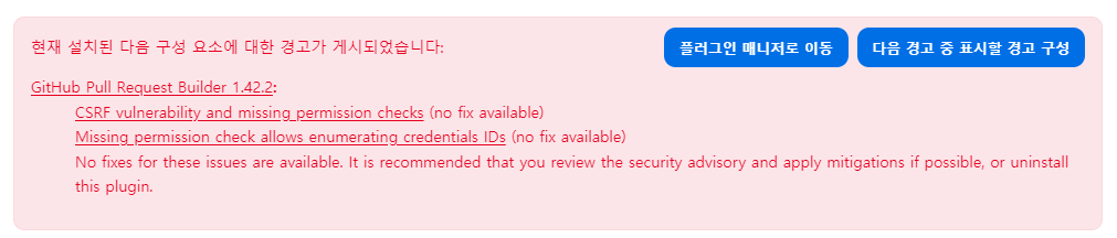 1. GitHub Pull Request Builder 설치 시 위험 경고표시