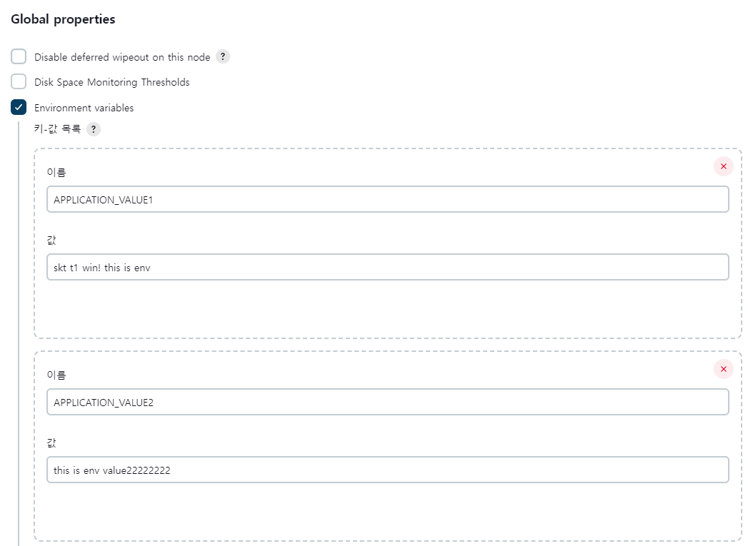 Global properties에 아래와 같이 yml파일에 있는 환경변수를 등록해줍니다.