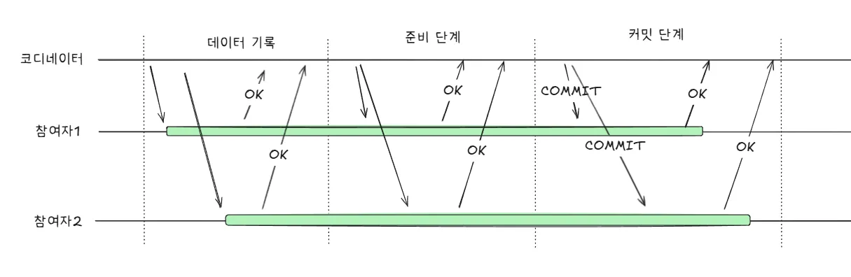 - 모든 서비스가 준비 완료 상태라면 커밋을, 하나라도 실패하면 롤백을 결정한다.