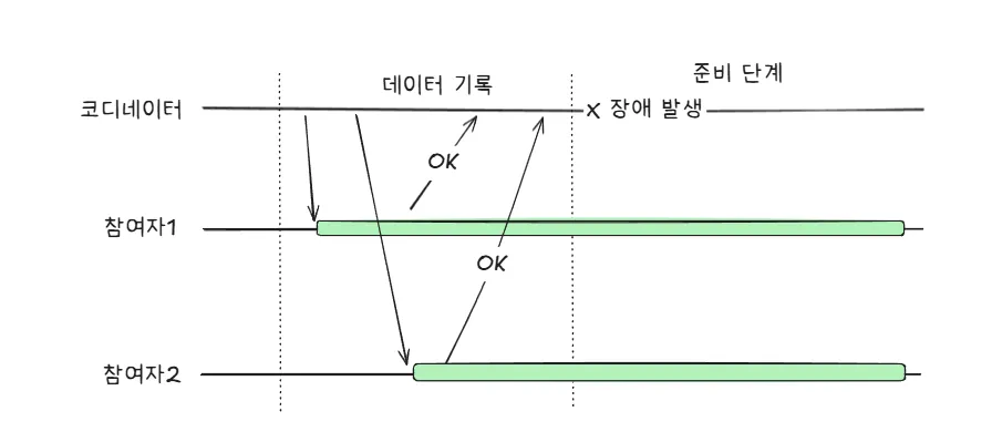 - 참여자는 장애를 복구한 뒤에 트랜잭션 로그를 확인해서 커밋을 마저 진행한다.