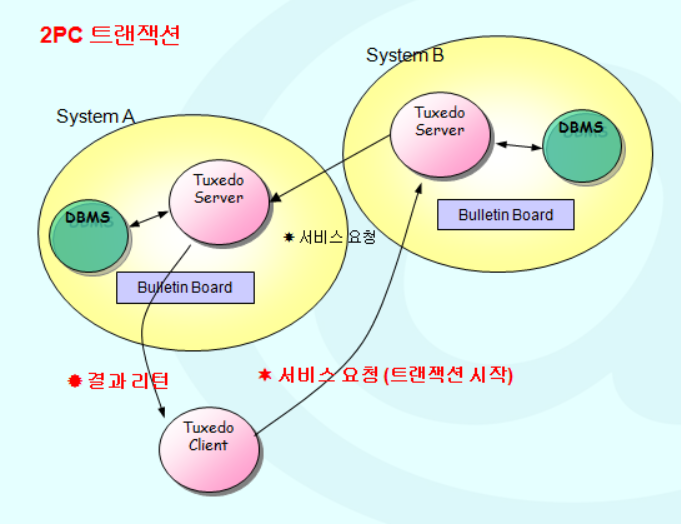 어플리케이션에서 트랜잭션을 이름으로 요청하면 Tuxedo는 이를 최종 목적지에 전달하여 어플리케이션에게 트랜잭션에 관한 위치 투명성을 제공합니다.