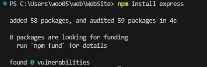 우리는 Express 패키지만 설치했지만 폴더를 열어보면 패키지가 참조하고 있는 다른 npm 패키지들도 같이 설치된 것을 볼 수 있다.(패키지 의존성이라 한다.)
