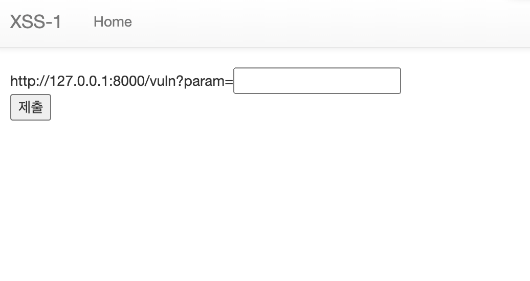 XSS 취약점이 있는 vuln페이지의 값으로 파라미터를 받을 수 있는 입력창이 있다.