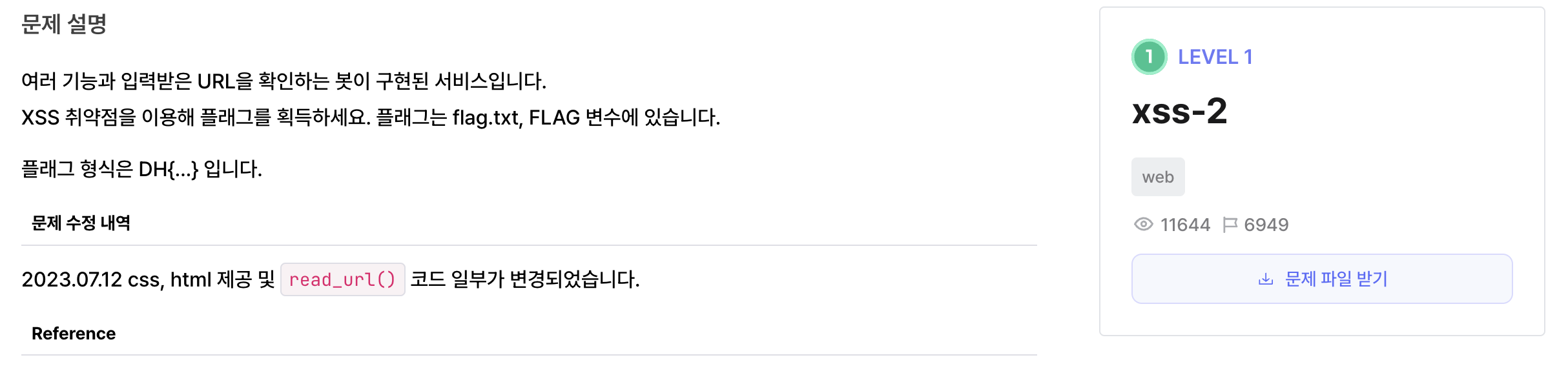 바로 전에 푼 xss-1문제와 비슷한 문제이다. xss-1처럼 xss 취약점을 이용해 플래그를 획득하는 문제이다.