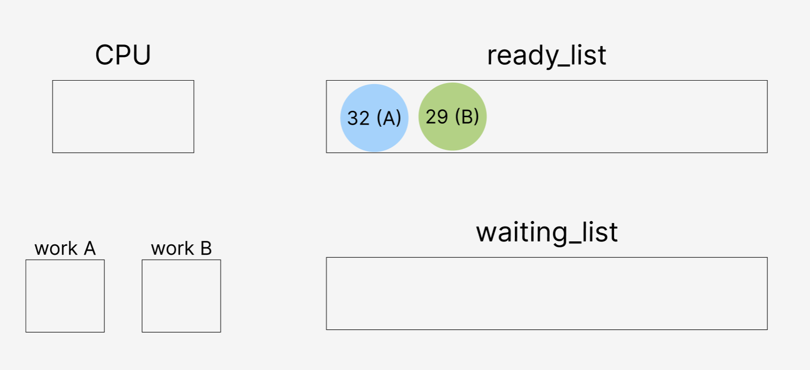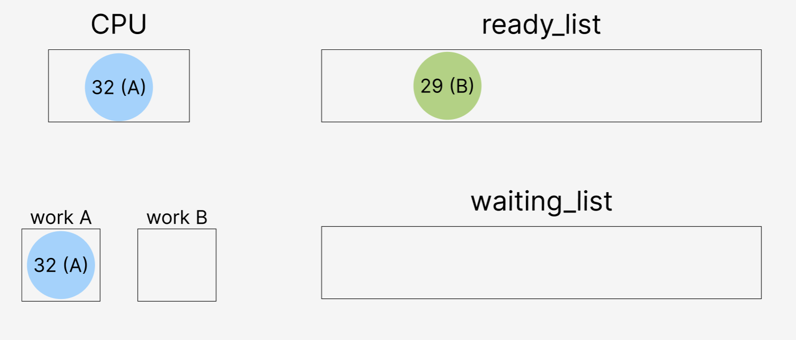 스레드 B 작업을 실행하는 29는 우선순위가 32보다 낮음에도 불구하고,