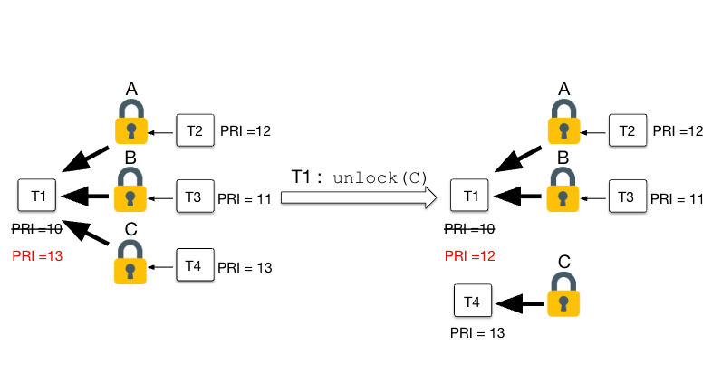 이렇게 순차적으로 전파하는 것을 nested donation(중첩 donation) 라고 한다.