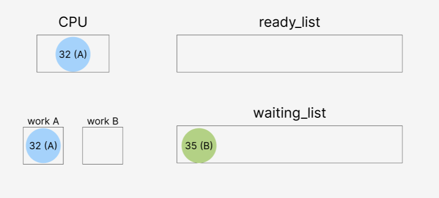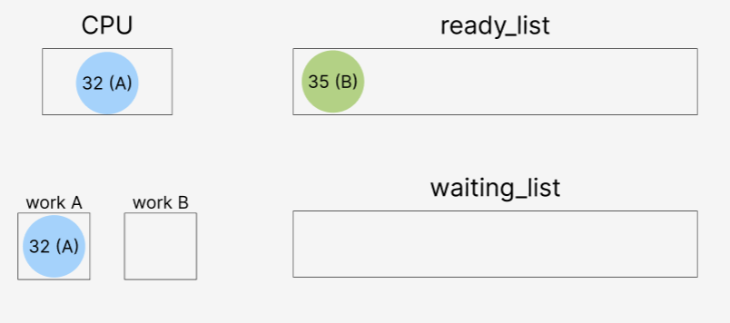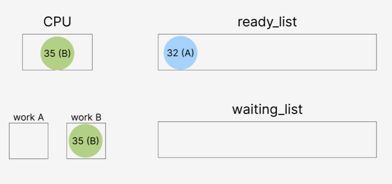 35가 더 높은 우선순위를 갖고 있기 때문에 현재 thread를 35로 바꾸어주는 작업이다.
