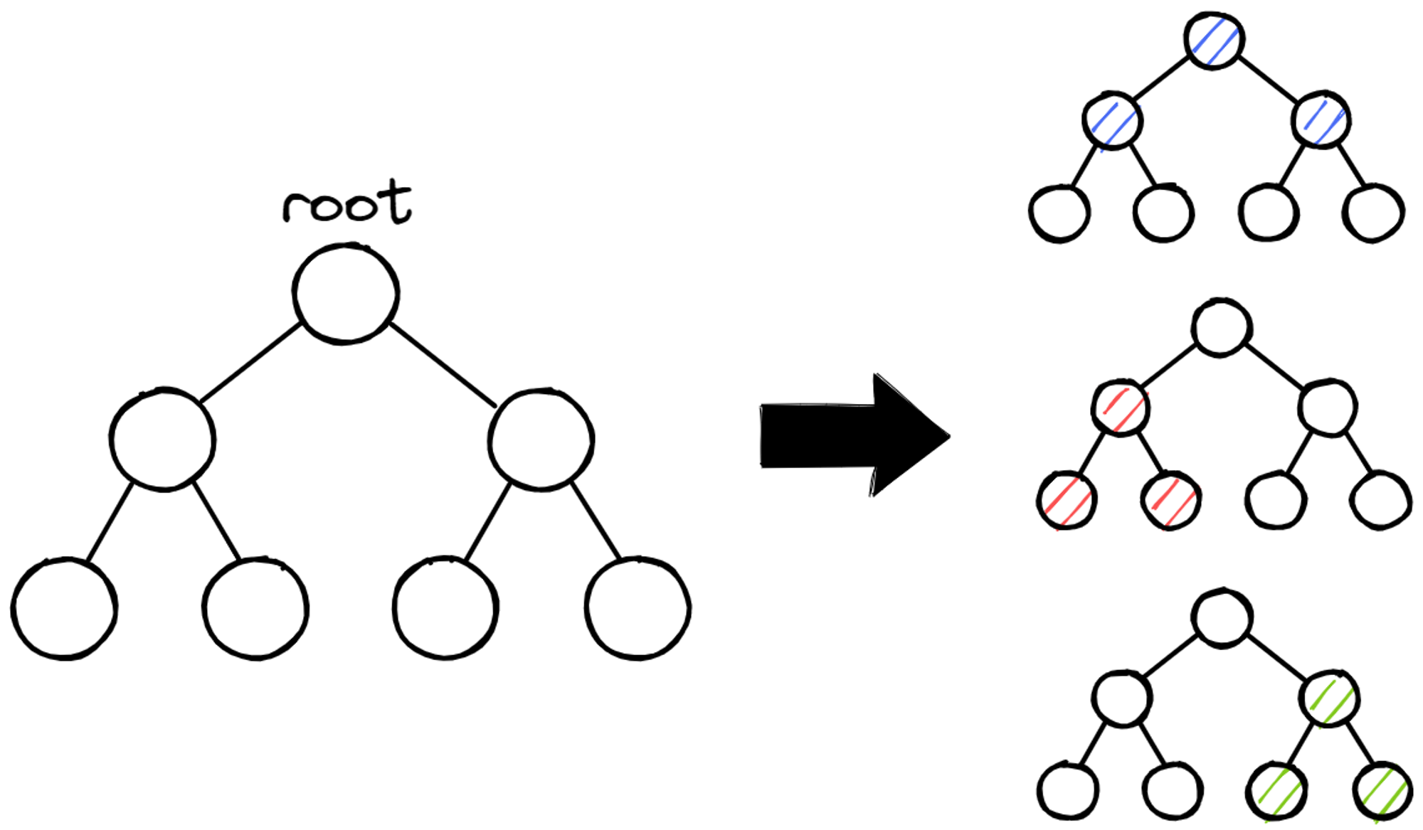 root에서 시작하여 여러 개의 tree가 중첩되는 형태로 만들어진다. 하나의 tree안에 여러 개의 subtree가 존재한다.