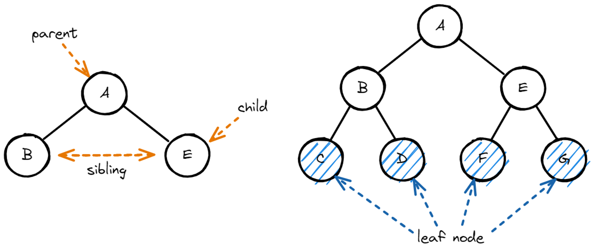 - 리프 노드(Leaf): 더 이상 뻗어날갈 수 없는 마지막 노드를 말한다.