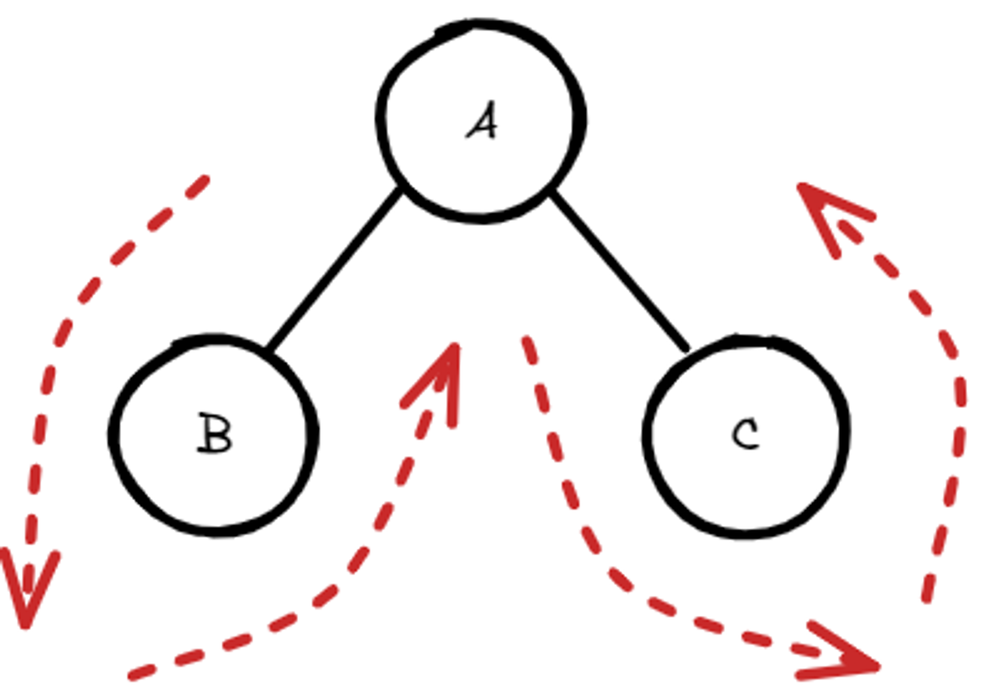 - 왼쪽 노드를 먼저 방문하고, 나(A)를 방문한 후, 오른쪽 노드를 방문한다.