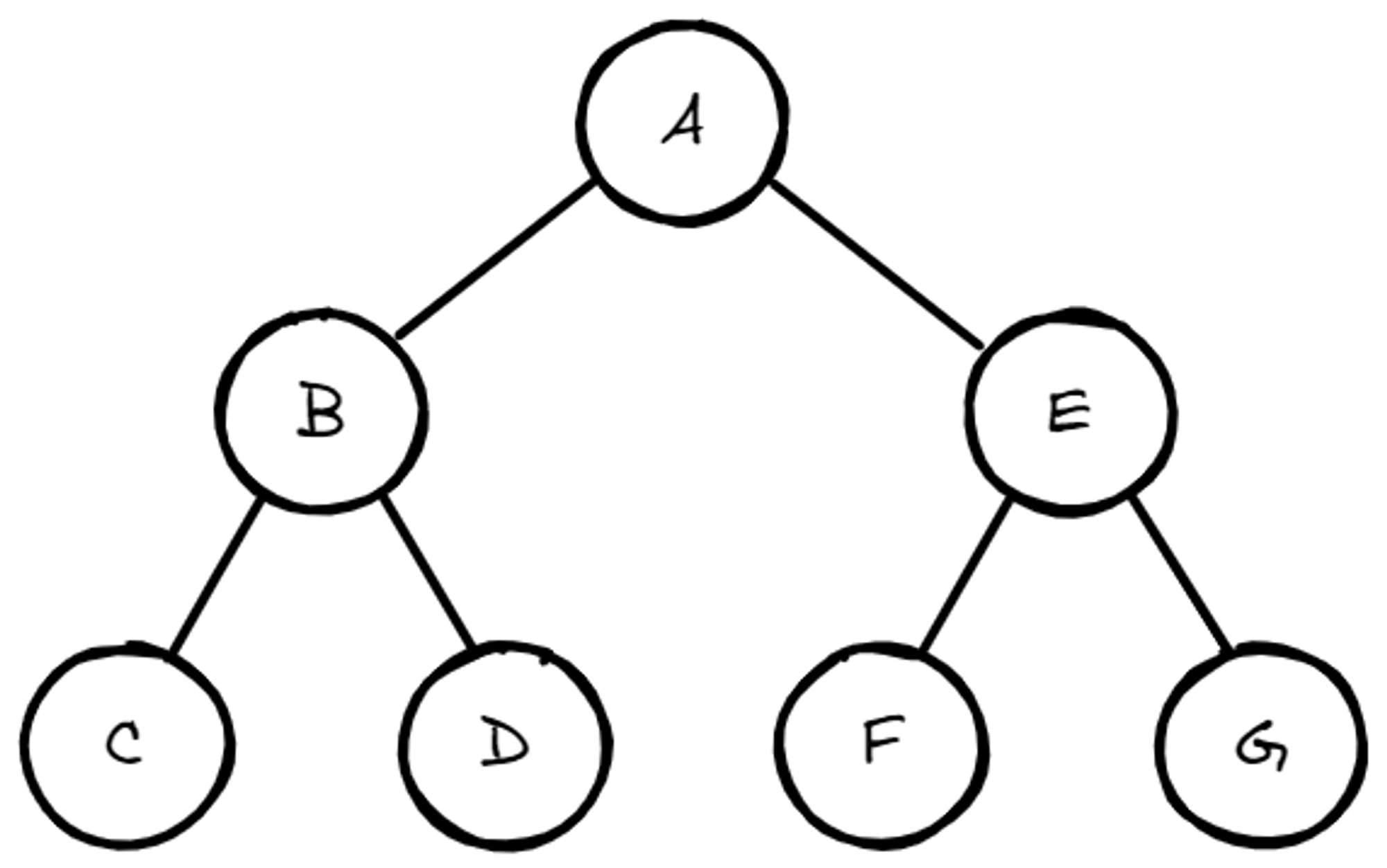 전위 순회: A ⇒ B ⇒ C ⇒ D ⇒ E ⇒ F ⇒ G