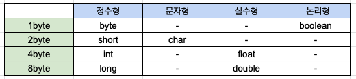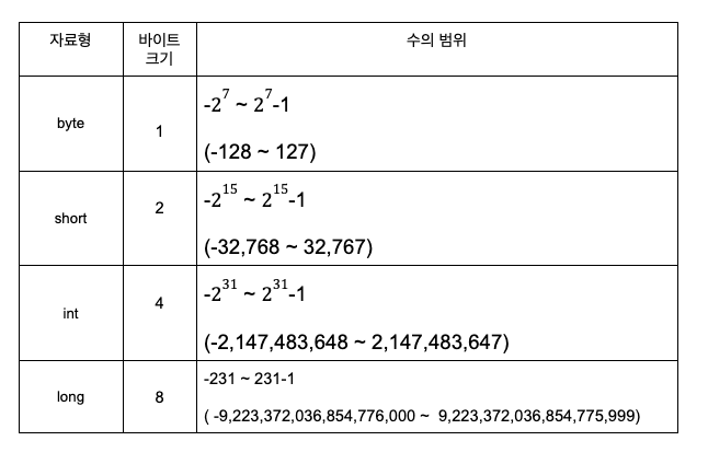 - 자바에서 사용하는 정수에 대한 기본 자료형