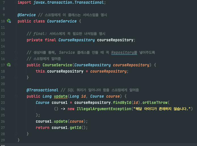 = read, update할 때 Course 클래스를 막 써도 될까?