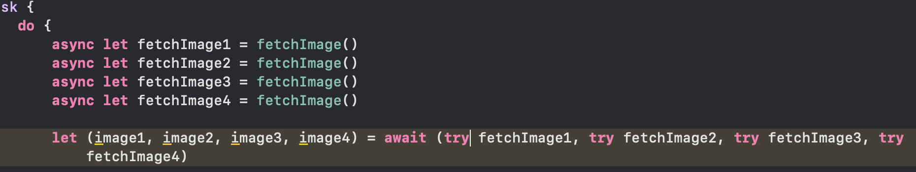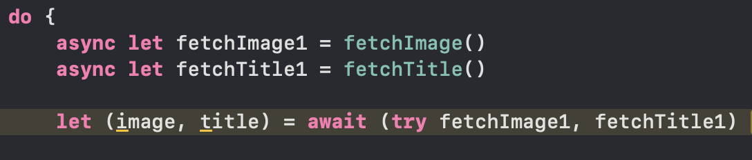 이렇게 async let 키워드를 붙여서 함수에 이름을 붙여주고
