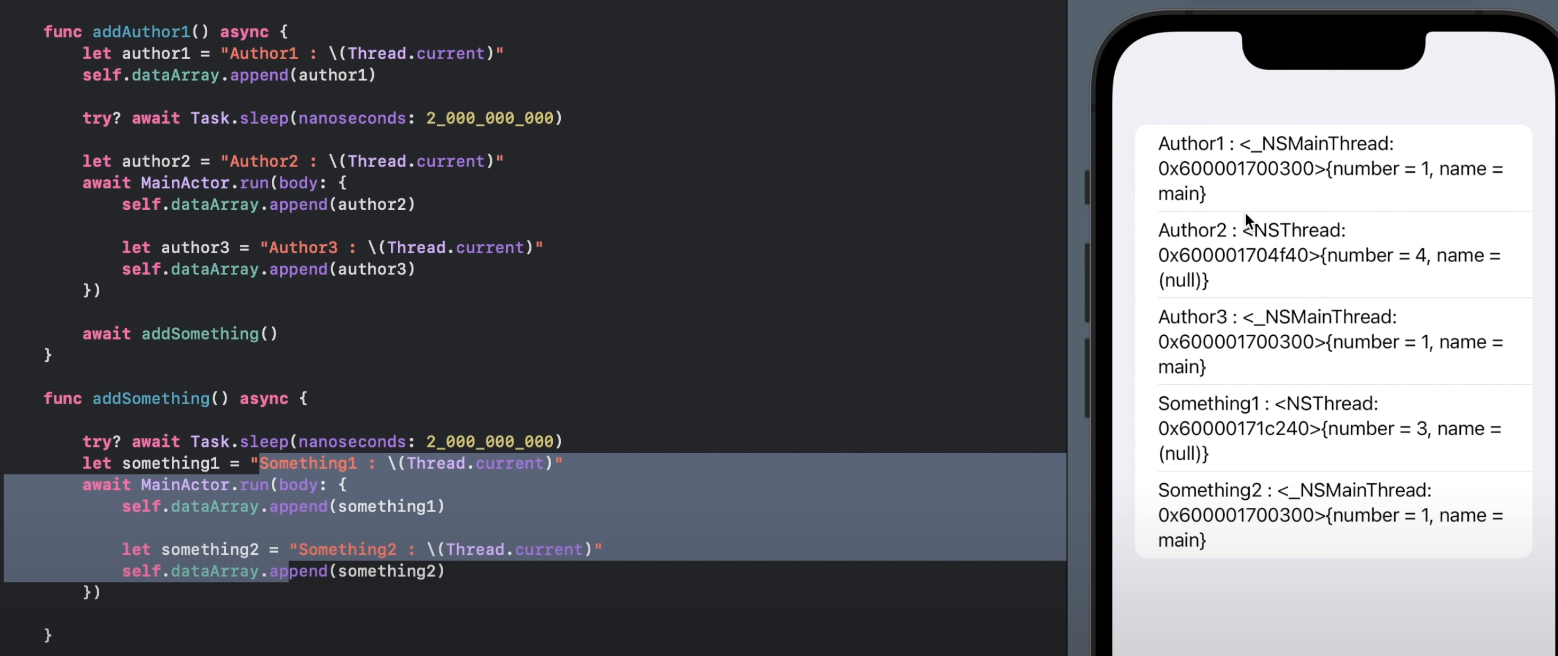이 과정이 백그라운드 스레드에서 동작하게 되면서 UI업뎃을 하면 안되니까 Actor라는 애를 사용해서 Main 스레드로 옮겨주는 거고.